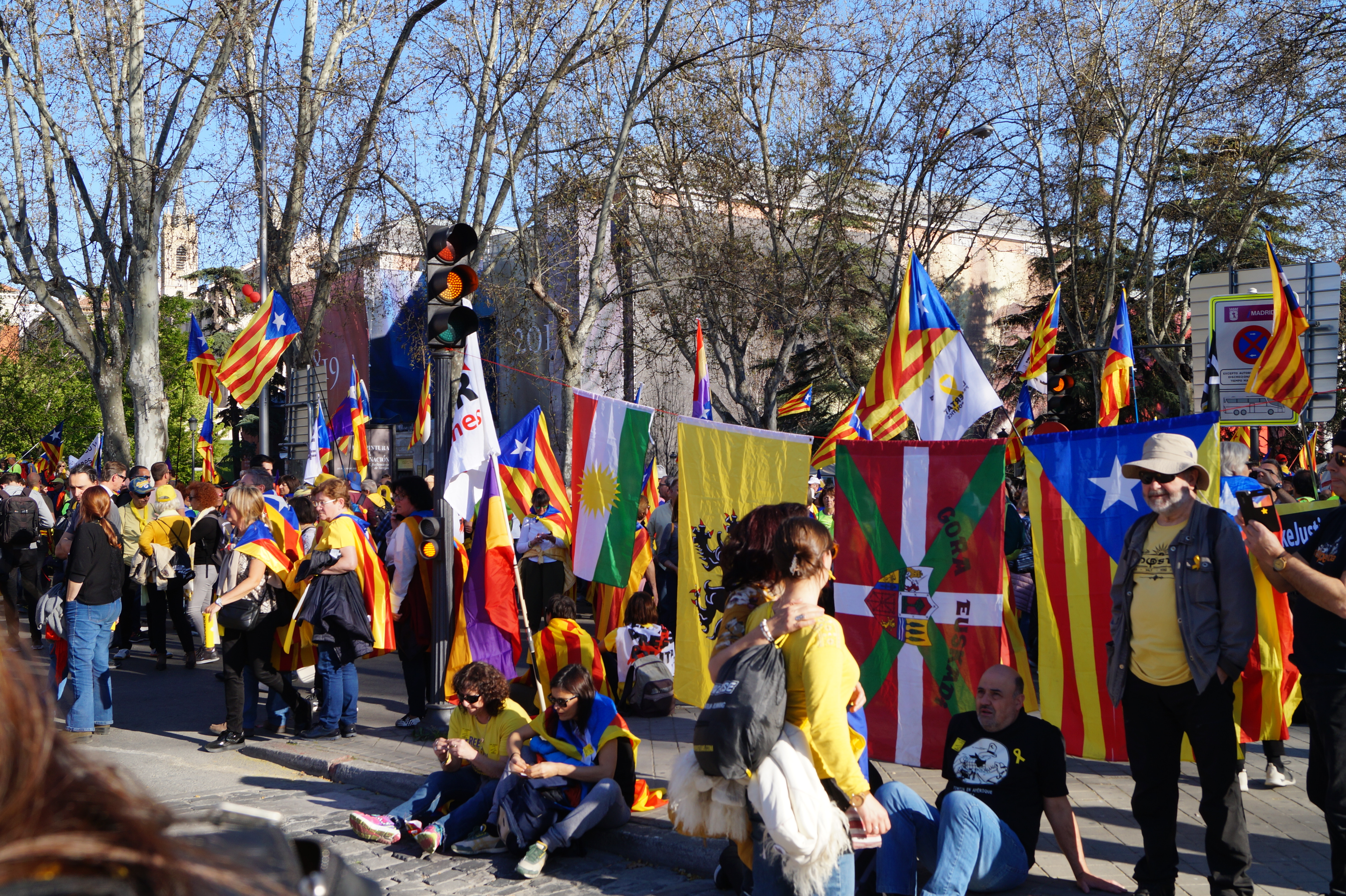 El bus s’atura davant de l’hotel Intercontinental. Una de les zones més emblemàtiques de Madrid. El passeig del Prado, la Puerta de Alcalá, la Cibeles… i finalment els voltants d’Atocha, on s’inicia la manifestació. Els autocars es buiden i Madrid s’omple de banderes estelades i de missatges contra l’empresonament dels polítics catalans. Velles cançons composades temps ha es tornen a escoltar sense cap malenconia es una atmosfera reivindicativa tenyida d’il·lusió.