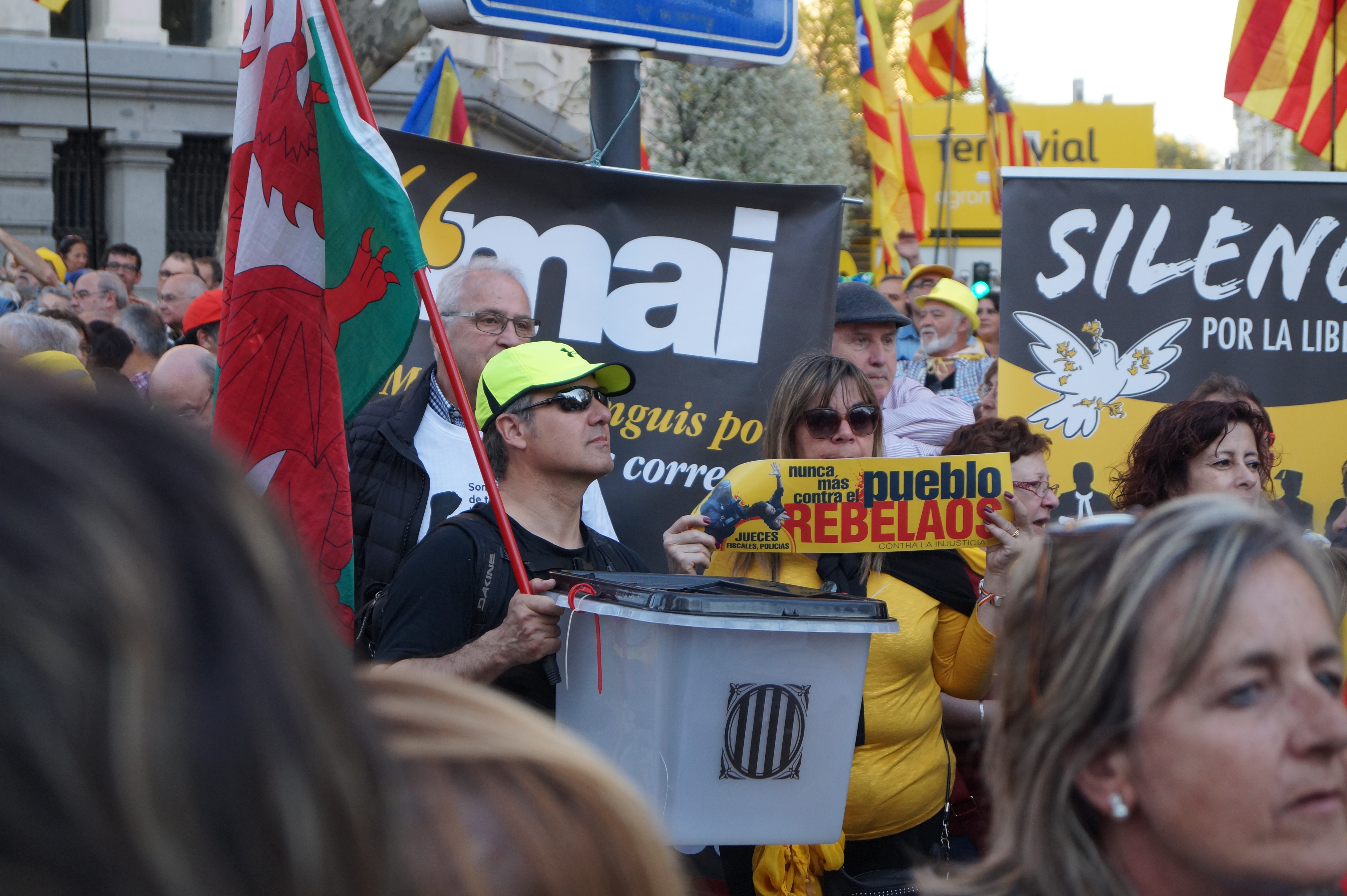 Els representants de les entitats sobiranistes catalanes inicien la marxa cap a la plaça de la Cibeles a les cinc de la tarda. Les primeres espases d’ERC, JxCat i la CUP son al capdavant. La gent demana unitat als partits que representen el sobiranisme. Col·lectius republicans de Madrid i Castella la Manxa fan costat a tots els mobilitzats des de Catalunya. També gent de tota Espanya. Banderes d’Andalusia, de Galícia, del País Basc, de Canaries o d’Astúries onejaven juntes entre estelades. Una Espanya invisible als mitjans emergeix de les bases populars com una realitat de llarga existència ancorada al passat.