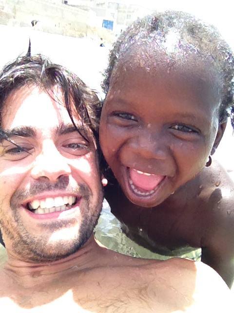 L’endemà vaig cap a la platja de N’Gore. Volia relaxar-me i que el meu cos es comencés a adaptar a aquest nou ecosistema. Estic mirant enlaire, suspès a l’aigua. De cop sento rialles i em comencen a esquitxar. Una nena d’uns cinc anys se m’acosta descontrolada i amb un atac de riure. Porta trenes, arracades i un banyador rosa.